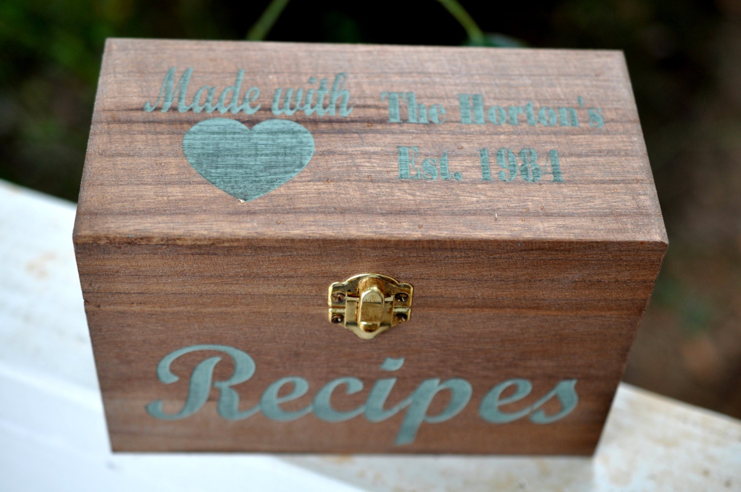 Personalized Recipe Box, Engraved Recipe Box, Custom ... from cdn.shopify.com If you clear cookies, your favorite posts will be deleted. It's the heirloom possession your grandmother might have used to pass down her favorites. The personalized recipe cards would be perfect to purchase and attach to food gifts you might be personalized notepads make the perfect gift or accessory and will brighten up any desk or home! Perfect for wedding and shower gifts. See more ideas about recipe box, recipe cards, recipe holder. A beautiful wooden recipe box engraved with a cherry blossom branch. Personalised name wooden recipe box by clouds and currents, the perfect gift for £40.0! A wooden hinged recipe box, with engraved, wooden recipe dividers.